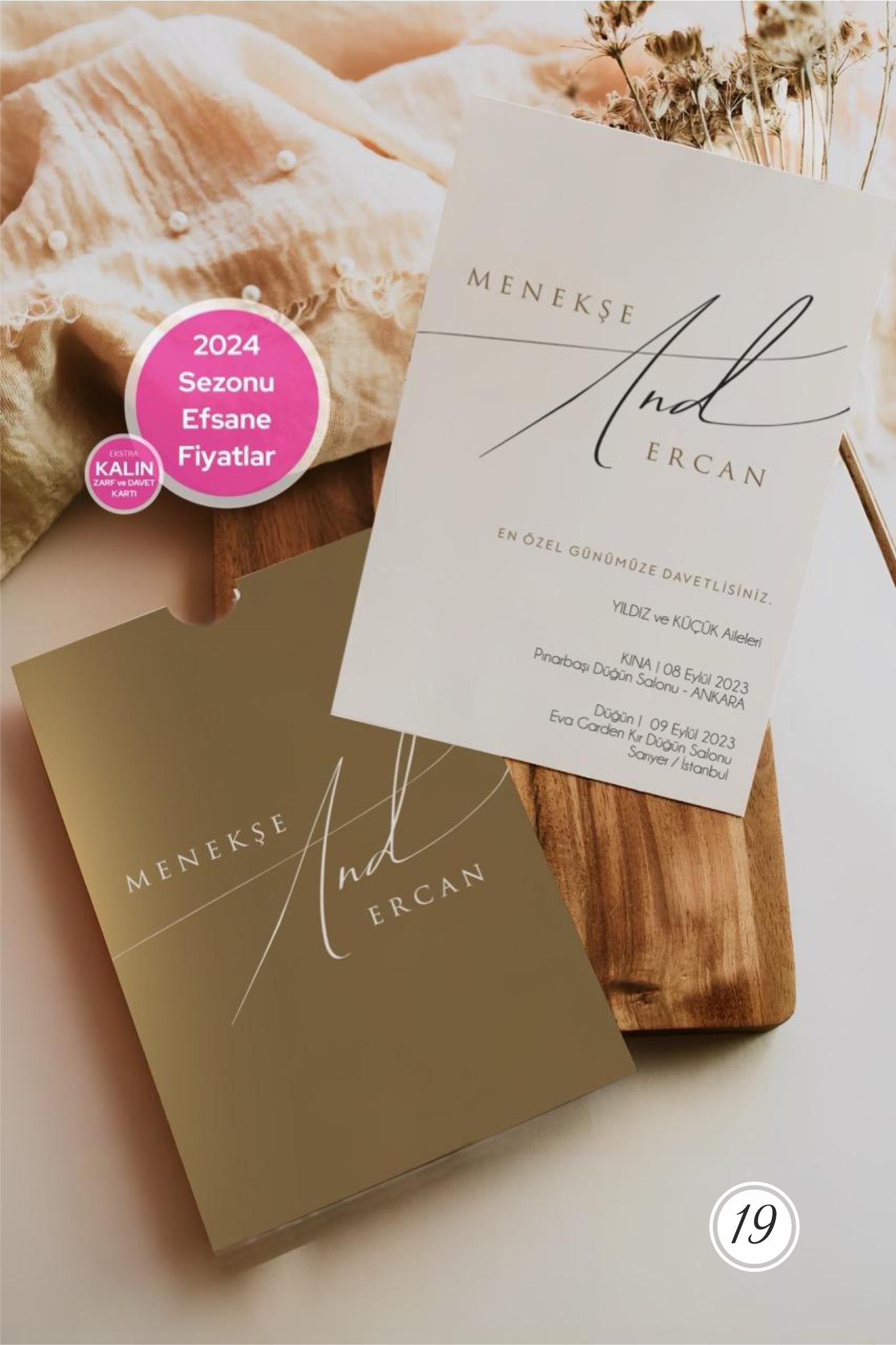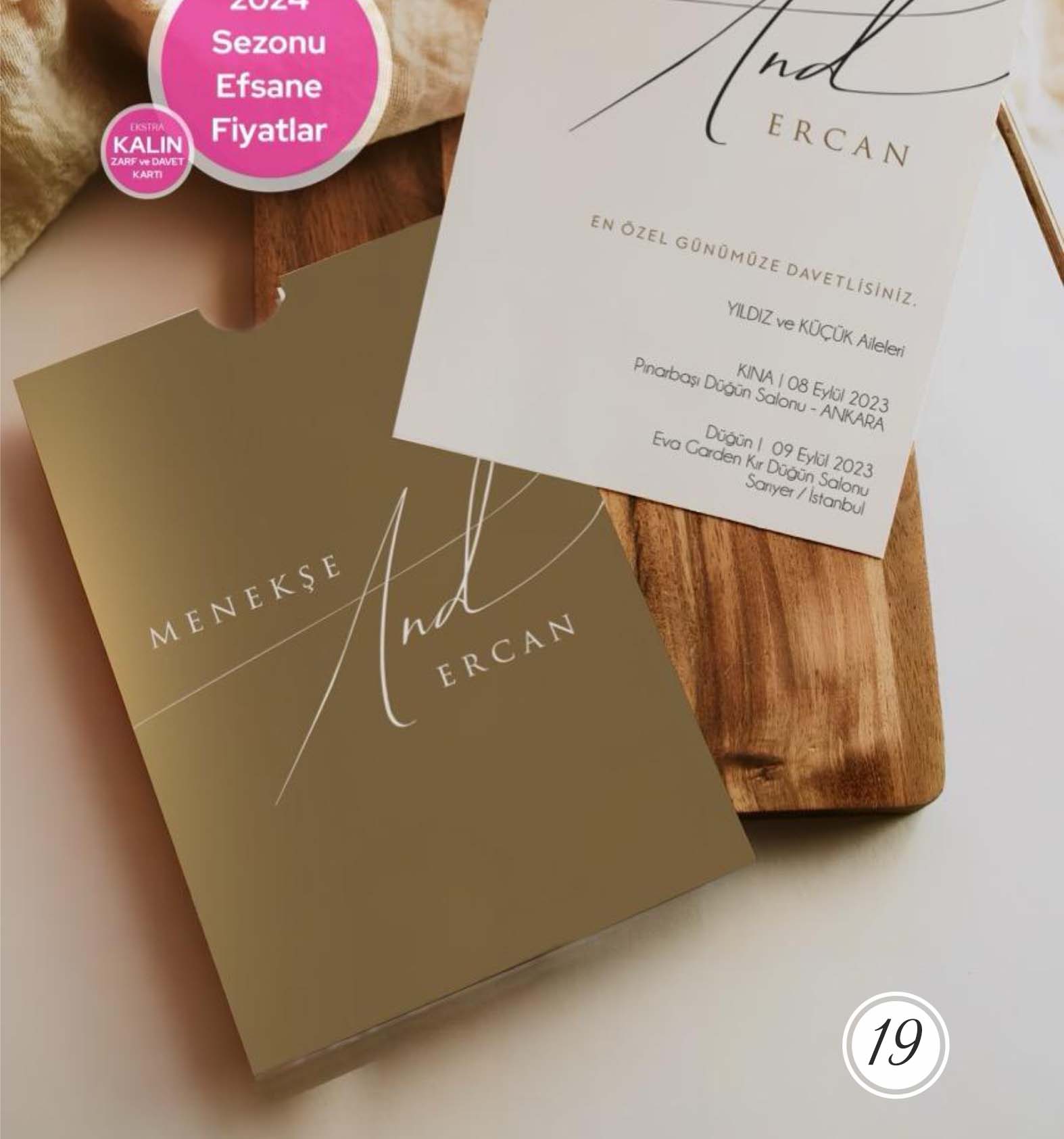 Modern tasarım anlayışıyla hazırlanan bu özel model, zarif detayları ve kaliteli baskısıyla davetinize prestij katar.