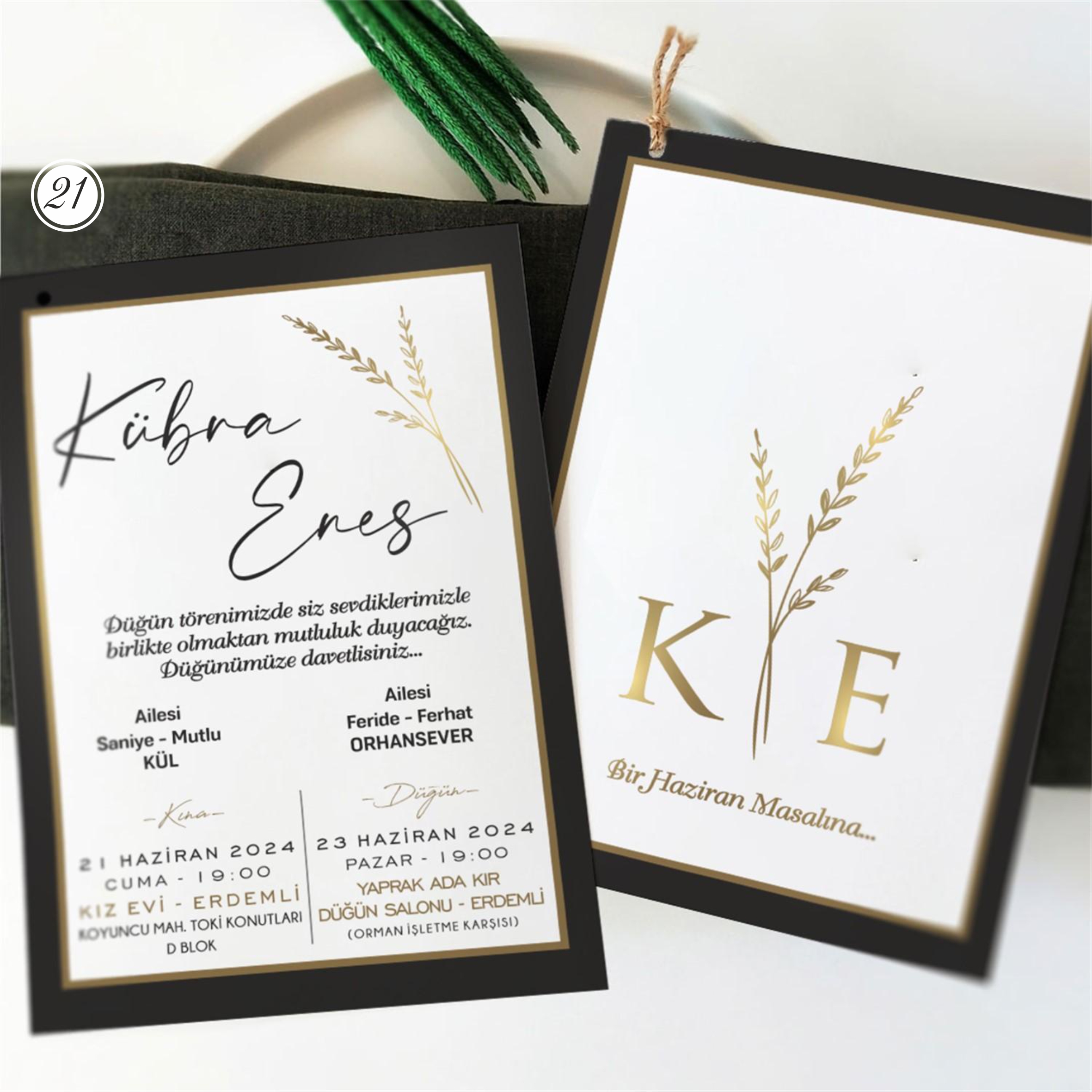 Modern tasarım anlayışıyla hazırlanan bu özel model, zarif detayları ve kaliteli baskısıyla davetinize prestij katar.