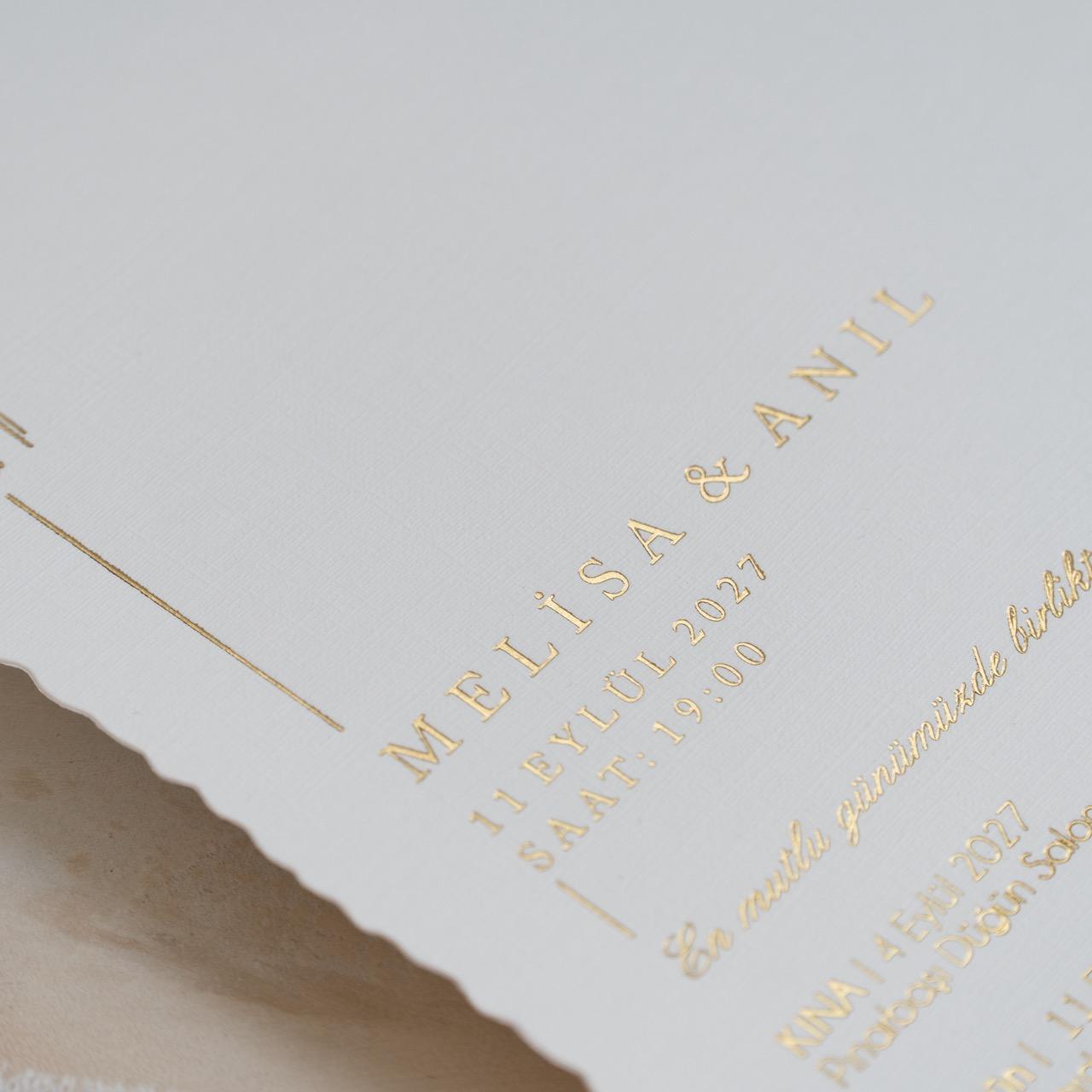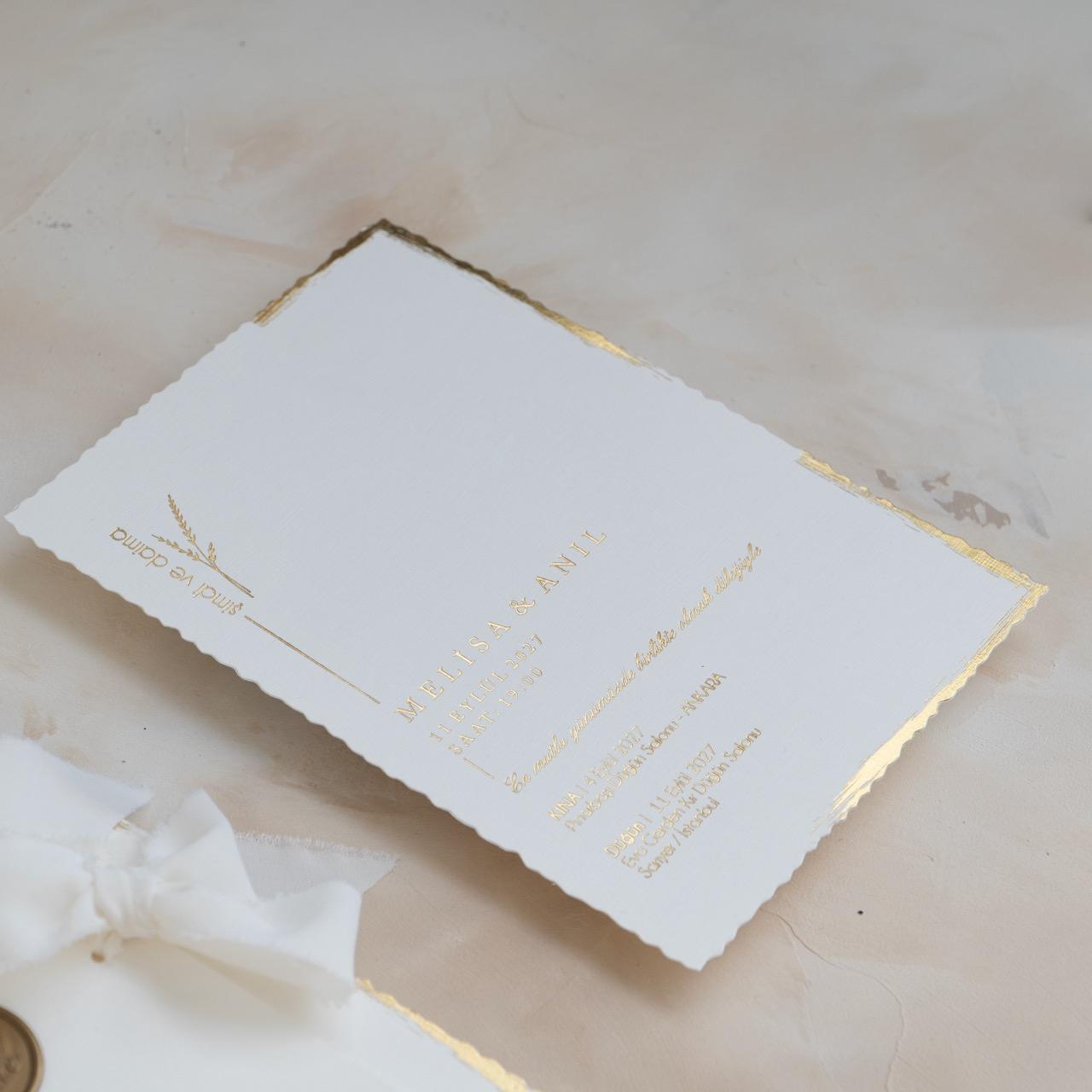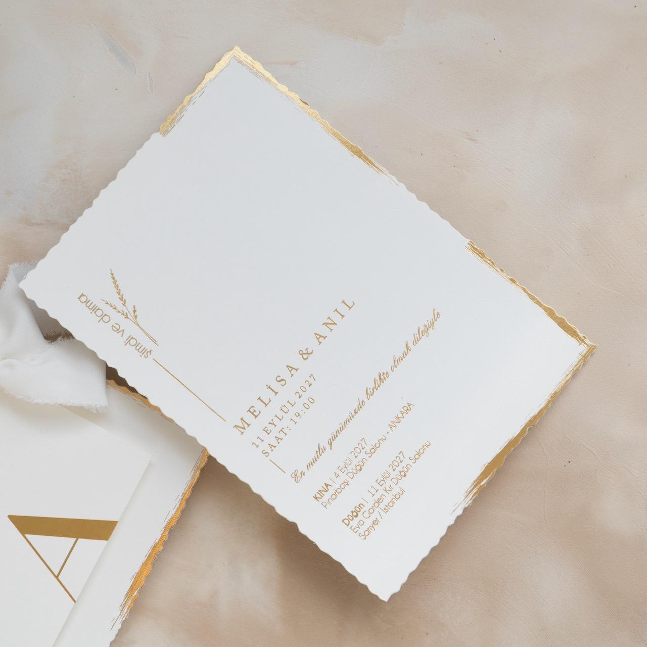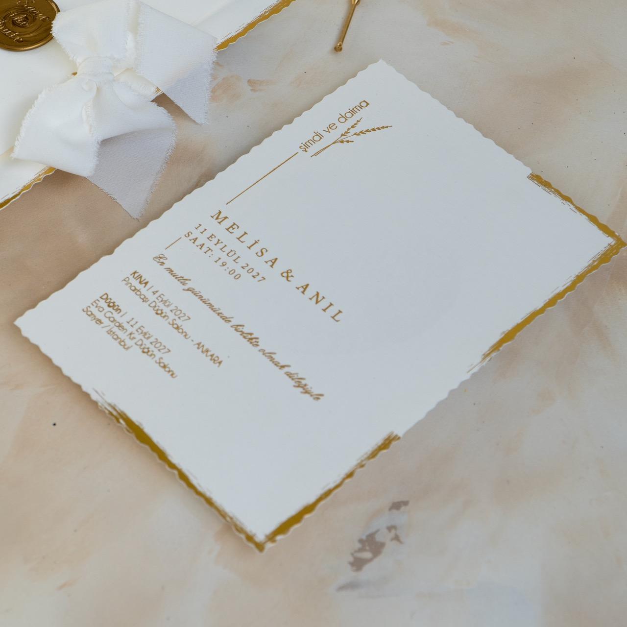 Modern tasarım anlayışıyla hazırlanan bu özel model, zarif detayları ve kaliteli baskısıyla davetinize prestij katar.